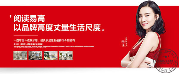 選好加盟全屋定制品牌,最先看的就是品牌知名度。除了被消費(fèi)者知曉接受并影響選擇的決策之外,對于樹立品牌形象也有非常積極的推動作用。易高家居邀請著名影星宋佳為其代言。央視、機(jī)場、高鐵、高速、網(wǎng)絡(luò)等媒體進(jìn)行多維度品牌傳播更是提高了易高家居品牌知名度。
