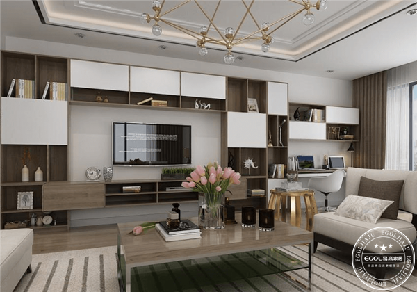 全屋定制客廳:客廳空間功能應講求劃分合理、協調統一、過渡緩和。現代客廳一般被劃分為就餐區、會客區和學習區(或休息區)等。會客區的通道要簡潔,空間要寬敞,光線要明亮,能夠達到溫馨、具有親和力是主旨。學習區(休息區)應比較安靜,靠近客廳某一隅,區域不必太大,營造舒適感卻很重要。整個客廳在視覺上力求明朗,可通過吊頂的走向、裝飾品的擺設來區分,但要注意客廳空間的和諧統一。