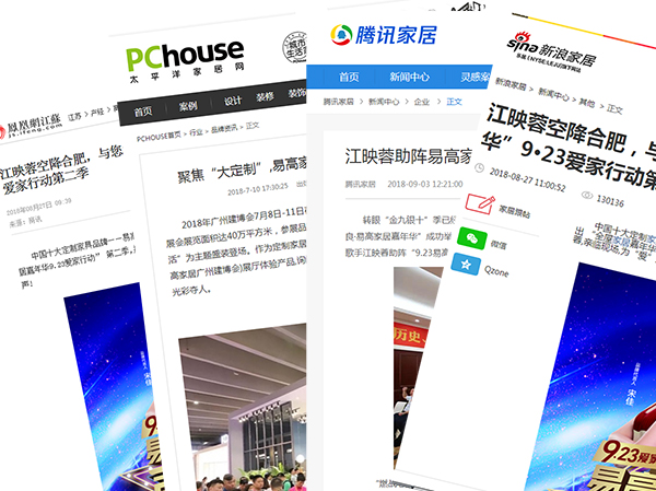 易高家居先后新橋機場、合福高鐵、鄭西高鐵、合安高速安徽段、寧蕪高速江蘇段、合肥高鐵站等多個地點進行廣告宣傳。