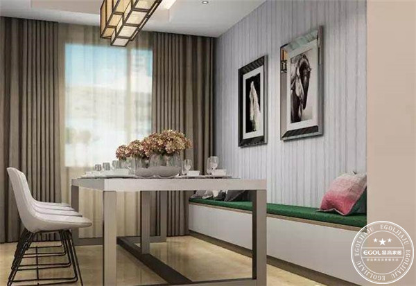 為什么不選擇不可以動的椅子呢?我們都知道固定的桌椅是不方便人們調整位置的,如果是可移動還可以收納或者移動到適合身體機能的位置其實是最好的,家庭裝修時如果餐廳采用卡座式的裝修,通常情況下是靠墻的那么用磚頭或者板進行固定的卡座,而在過道這邊采用可移動的餐椅。這樣的裝修方式,可以讓餐椅占用的空間做到最小化,有效的利用餐廳空間。在不用時,可以將可移動式椅子收納到餐里面去,增加空間的是使用率。