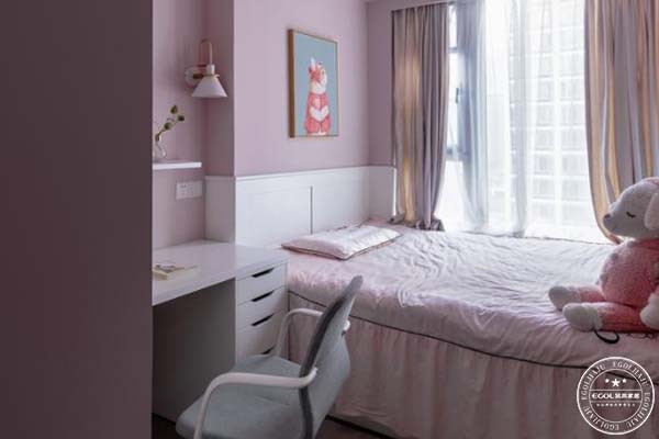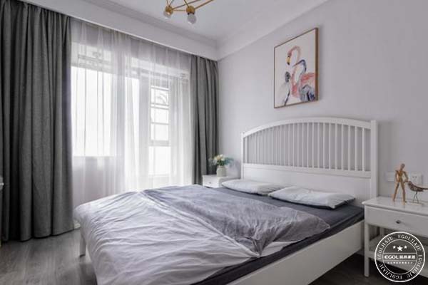 臥室陽臺、床、裝飾畫、插花,北歐風灰白加上局部粉色,真?zhèn)€空間充滿氣質(zhì)的暖。臥室刷了淡淡的乳白色,和頂部對比可見層次感。