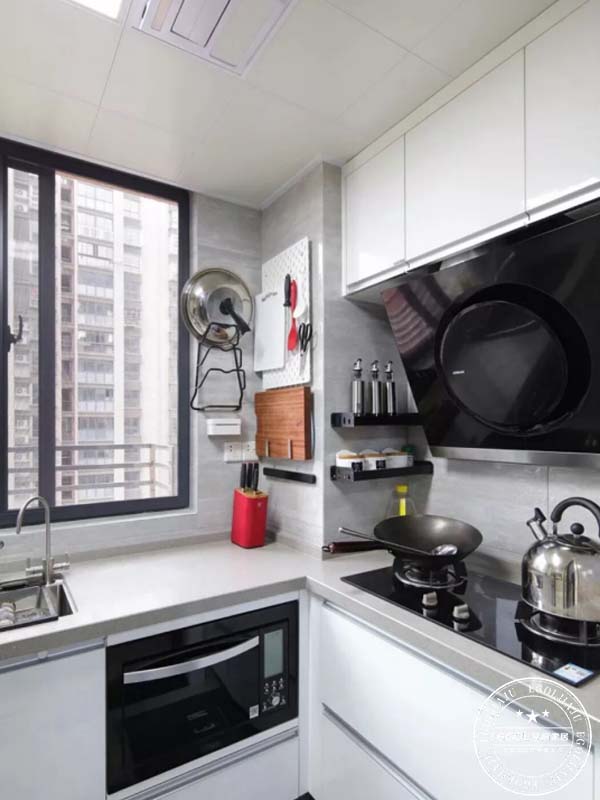 原諒我磁力刀架上面沒有放刀,我老公總擔心會掉下來,大紅色刀架有點礙眼,沒辦法,雙立人只有這個套裝性價比最高。為了省錢把U型廚房改成L型,后來發(fā)現(xiàn)置物不夠,又定制了一組柜子,用來放各種小物品,還真的蠻實用的。