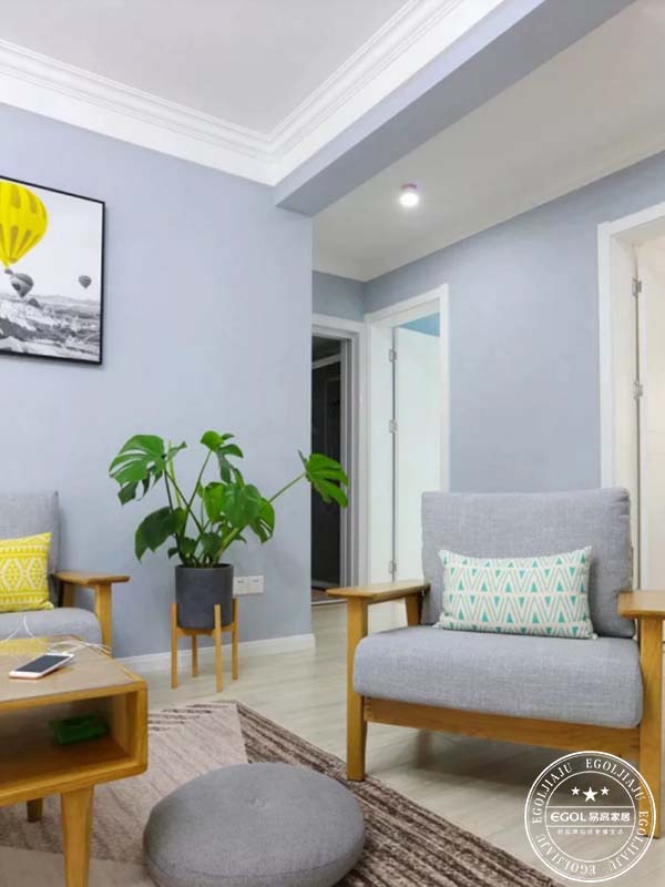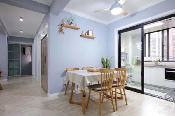 喜歡簡單明亮的北歐風,整個餐廳客廳都是采用藍灰色調(diào)打底,這個顏色硬是讓師傅調(diào)了整整三個小時才給整出來,哈哈本來想用文化磚,后來發(fā)現(xiàn)網(wǎng)上買的都是瓷片磚,工人鋪貼費用就要一兩千,最后果斷放棄,無意中發(fā)現(xiàn)硅藻泥也有這種類似文化磚的式樣,就做了硅藻泥還環(huán)保。不喜歡那種大大小小密密麻麻的掛畫,選擇了簡單款式,同等大小的掛畫,呼應(yīng)沙發(fā)墻面窗簾的顏色,效果很滿意。