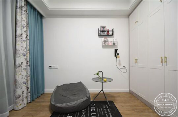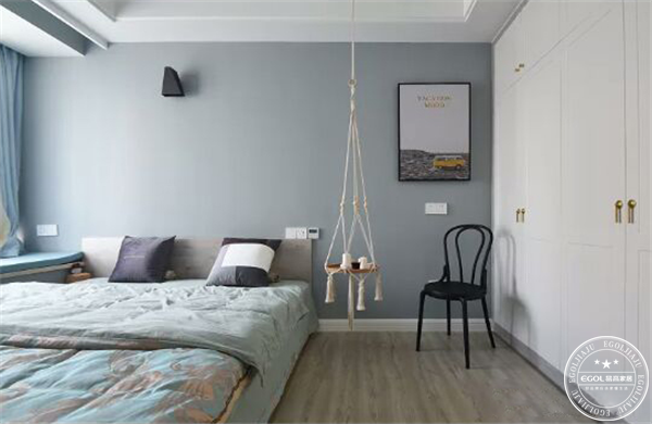 兒童房也是呼應客廳的色調,吊邊幾,輕盈不笨重,富有慢生活、時尚感!