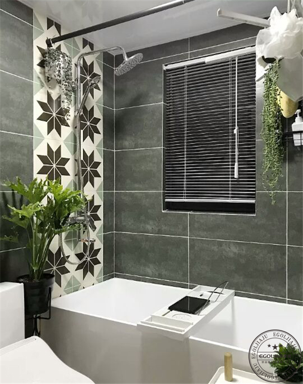 客衛單獨把洗手臺隔離出來做了干濕分離,鋪貼六角磚、花磚,并做了美縫處理,