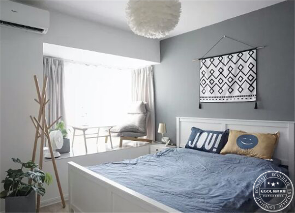 臥室是讓人放松睡覺的地方,灰色白色搭配,看似簡單的裝修,靜坐飄窗沐浴陽光和天空,瞬間心能平靜下來。