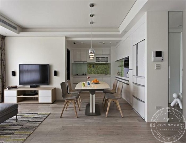 提倡“輕裝修,重裝飾”的原則,如果在狹小的空間做過多的造型,會(huì)使得空間看起來更加擁擠,還不如輕裝修。在一定的空間范圍內(nèi)減少了固定笨重的裝修,空間被空出來了,人才能活得自由自在。