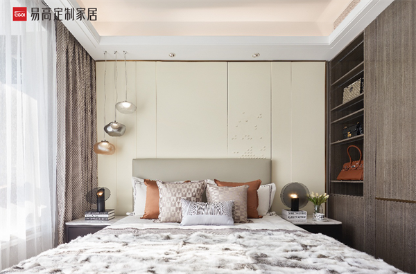 一體式床頭柜是將衣柜和床頭柜相結(jié)合,將靠近床頭的轉(zhuǎn)角向床頭延伸,打造出懸空的床頭柜,既可以滿足床頭柜的日常需求,還可以增加衣柜的收納儲(chǔ)物空間,將有效的空間發(fā)揮出更大的作用。非常適合空間小的臥室。也可以將延伸出來(lái)的部分作為梳妝臺(tái)、書(shū)桌來(lái)使用,讓轉(zhuǎn)角空間發(fā)揮得更加出彩,整體空間效果看起來(lái)更加整潔舒適。