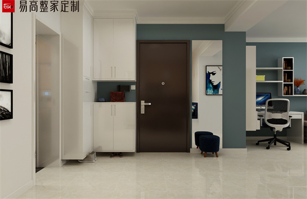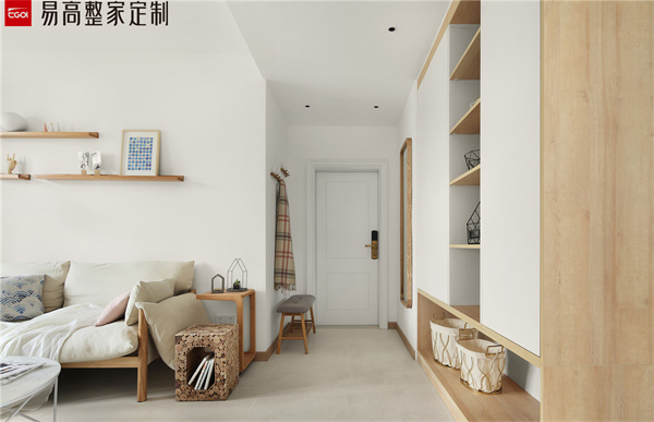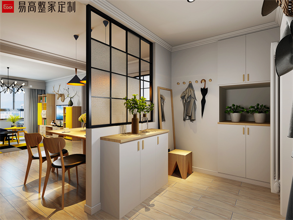 玄關處可以定制一個頂天立地的卡座式的玄關柜,門柜一體化設計和墻面相結(jié)合,不僅可以鞋物收納還有隨手物品的擺放需求,而且卡座式的設計可以滿足坐著換鞋的需求性。這種設計非常實用,特別是對于老人和小孩來說,換鞋更加便利了。