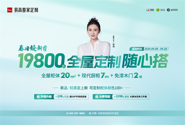 全屋定制要花多少錢?春季裝修正當時,易高整家定制讓家裝消費者真正省錢省到家!4月6日—4月26日,抓緊時間進店搶購吧!