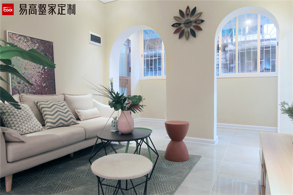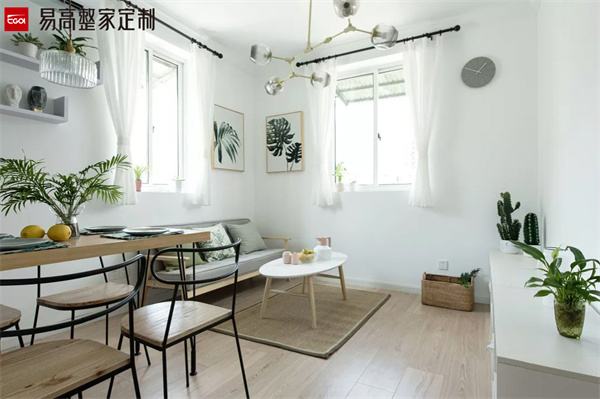 小客廳可以選擇不要電視柜,電視柜比較大會占用一部分的空間。看起來也會讓室內(nèi)顯得比較擁擠。想要看電視的話,可以選擇安裝投影儀,看起來視覺效果也更加簡潔寬敞,還能增加觀影的娛樂性。空間小,家裝顏色搭配要選擇比較清新簡約的色系比較好,比如奶油色系、原木、白色以及奶咖等等,給人一種清爽大氣簡約的感覺,不會有壓迫感。