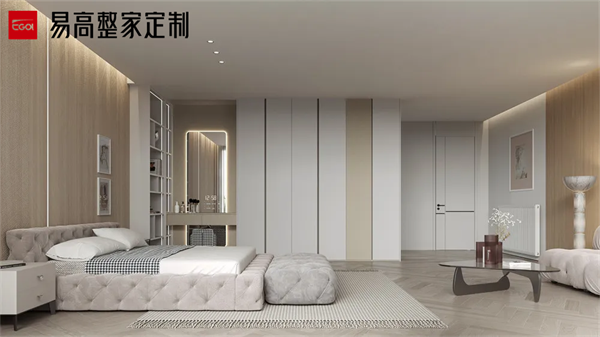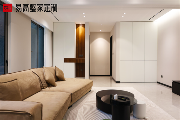 細(xì)節(jié)處理直接影響衣柜的美觀和實(shí)用性。例如,頂封板應(yīng)內(nèi)置,避免外露;左右封板應(yīng)與柜體同厚,避免太寬影響美觀;為了整體美觀,柜體露出的側(cè)面應(yīng)加門(mén)板同色的見(jiàn)光板;柜門(mén)建議使用極簡(jiǎn)的長(zhǎng)拉手或無(wú)拉手設(shè)計(jì),如內(nèi)置反彈器,以體現(xiàn)極簡(jiǎn)風(fēng)格。