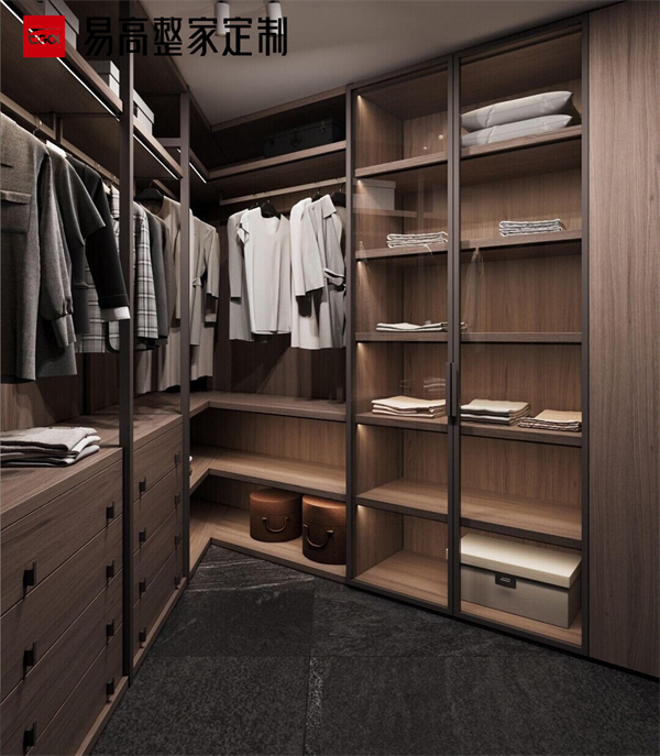 開發垂直空間:到頂設計(2.4m高),頂部40cm放換季物品,底部20cm設抽拉鞋架。推薦多功能組件(升降衣桿、旋轉穿衣鏡、折疊熨衣板)和收納神器(蜂窩內衣盒、伸縮置物架、真空壓縮袋)。注意柜體深度不超過60cm,層板最好可調節。