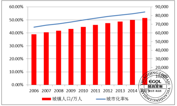 現(xiàn)全屋定制是整個家具市場的看點(diǎn),在此之前,定制家具行業(yè)將會不斷擴(kuò)充定制品類,廠家不斷招商,市場不斷轉(zhuǎn)型是未來主要的發(fā)展趨勢,據(jù)統(tǒng)計(jì),國內(nèi)定制家具行業(yè)滲透率只有20%,未來發(fā)展空間巨大,穩(wěn)步提升是近年發(fā)展景象,未來可能因條件改變不斷刺激行業(yè)發(fā)展,據(jù)國務(wù)院發(fā)布規(guī)劃條例中,2020年我國城鎮(zhèn)化建設(shè)將達(dá)到60%,對于家居行業(yè)是不是個好消息呢?