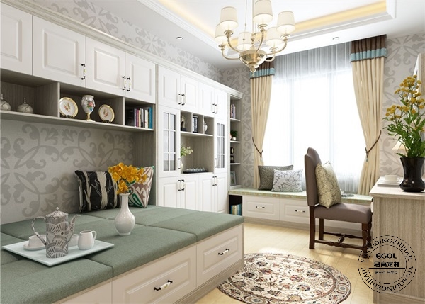 三室兩廳簡(jiǎn)歐定制家具設(shè)計(jì)方案——榻榻米書房