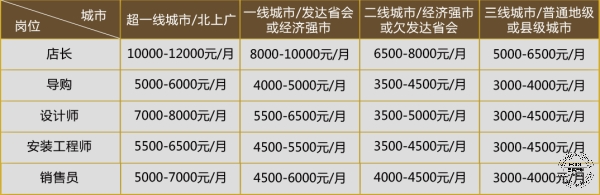 人員配置的變動(dòng)勢必會影響店面運(yùn)營成本,那么可以大概來看下不同城市水平下的人員薪酬標(biāo)準(zhǔn)。