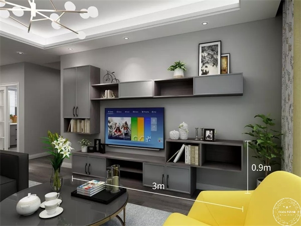 客廳的裝修關(guān)鍵詞是寬敞、實(shí)用,可以通過打造電視墻儲(chǔ)物柜擴(kuò)展空間,給人清爽、明亮的感覺。