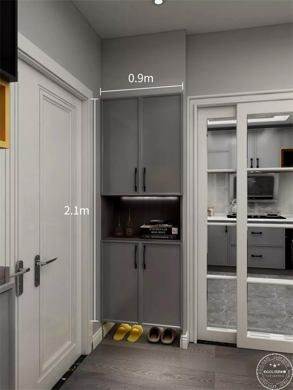 下方是鞋柜,中間是鏤空的展示區(qū)。展示區(qū)是主人表現(xiàn)個(gè)性的天地,可以根據(jù)自己的愛好、情調(diào)來打造,同時(shí)也為客廳增添了一道獨(dú)特的風(fēng)景線。