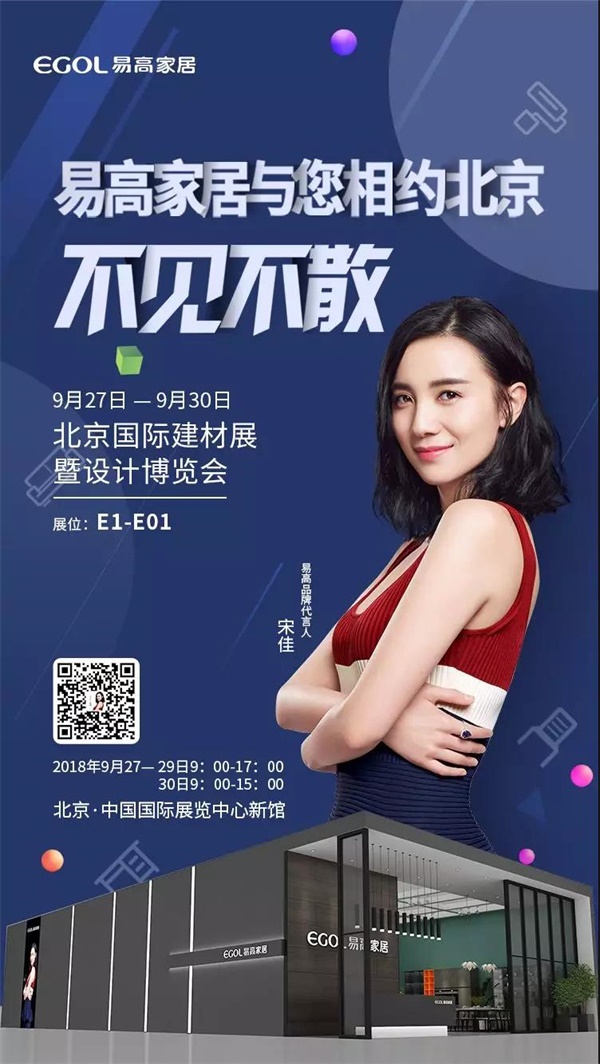 2018年9月27-30日,為期4天的北京國際建材展暨設(shè)計博覽會在北京·中國國際展覽中心(新館)即將舉辦。這次博覽會是國內(nèi)首創(chuàng)的以“設(shè)計+智能+定制”為導(dǎo)向的高端家裝建材全品類大展。屆時,易高家居將攜新品再度亮相,給您全新的定制家居體驗!