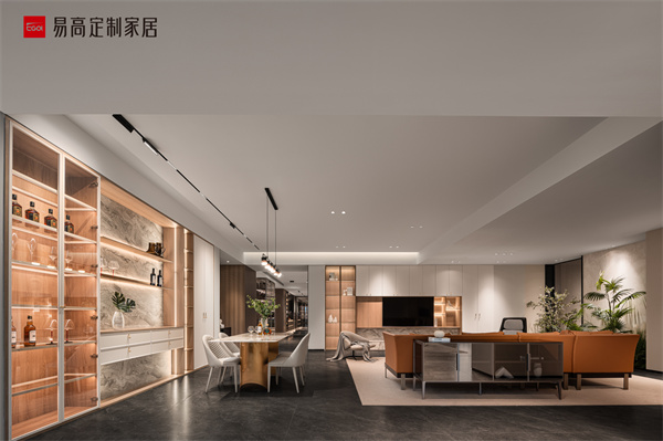 寬敞大橫廳設計,開放式格局充分演繹社交互動性。借助有序的線條延伸和清晰的體塊劃分,將秩序、功能、文化達成全新共鳴。跳色的加入讓空間煥發新生,賦予生活無限可能。